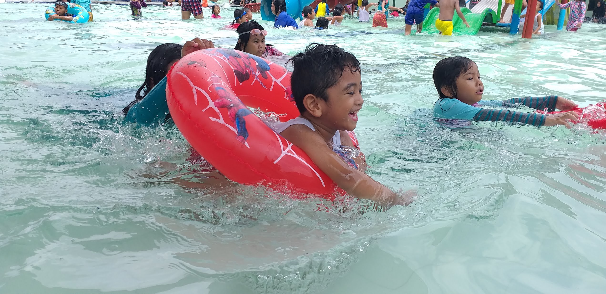 | Foto: Tampak anak-anak Surabaya gembira saat berenang di kolam renang Kodam V Brawijaya. |